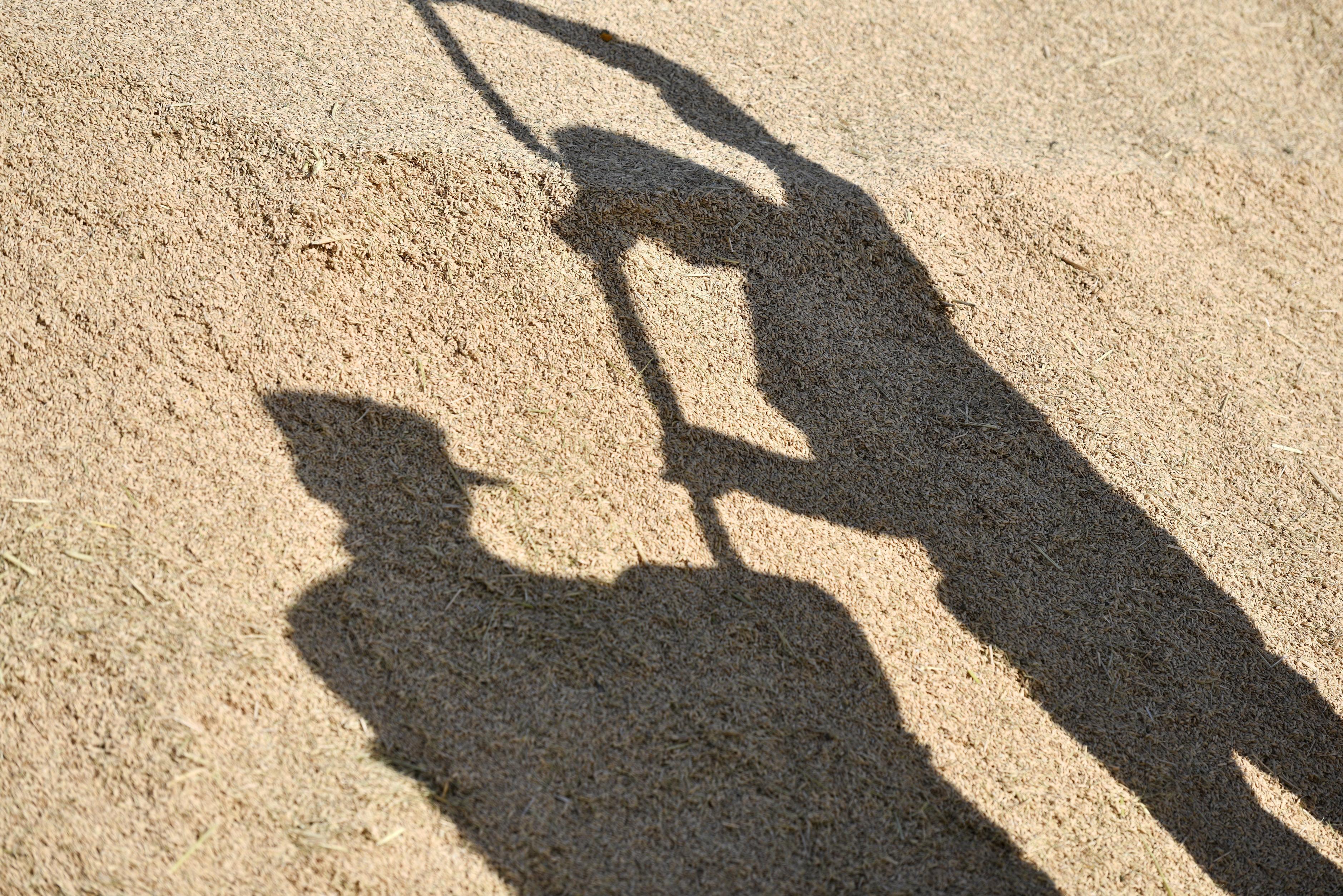 10月22日,在天津市津南区小站镇,农户在晾晒稻谷。