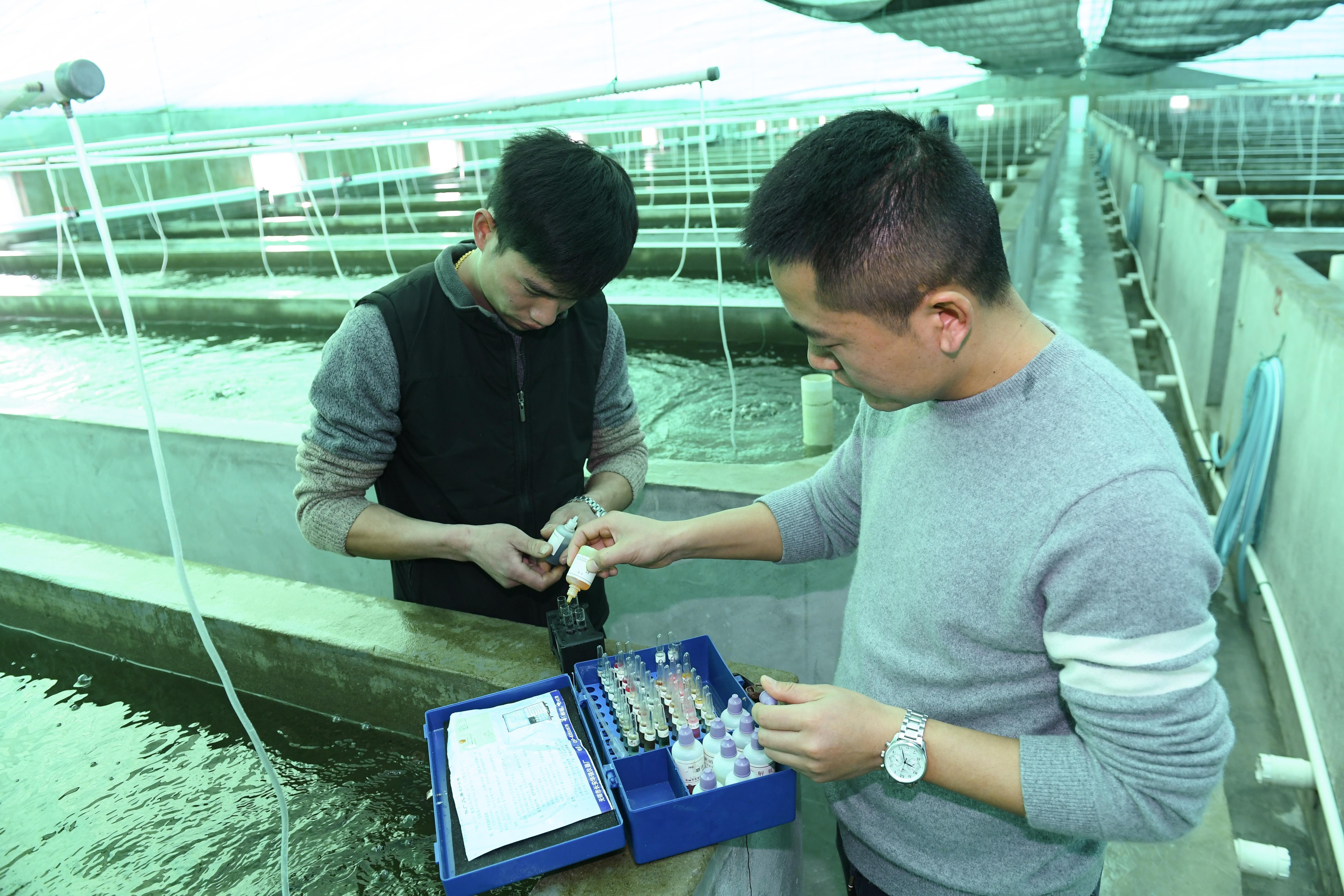 1月11日,工作人员在育苗车间进行水质监测。