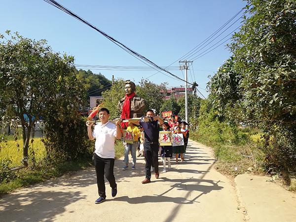 接下来上场的是龙港的历史和文化展。龙港村是老一辈无产阶级革命家方志敏烈士工作和战斗过的地方,村民们和方志敏有着特别深厚的感情,村民们自发做起了方志敏烈士的全身和半身铜像,红色故里永远和党一条心。