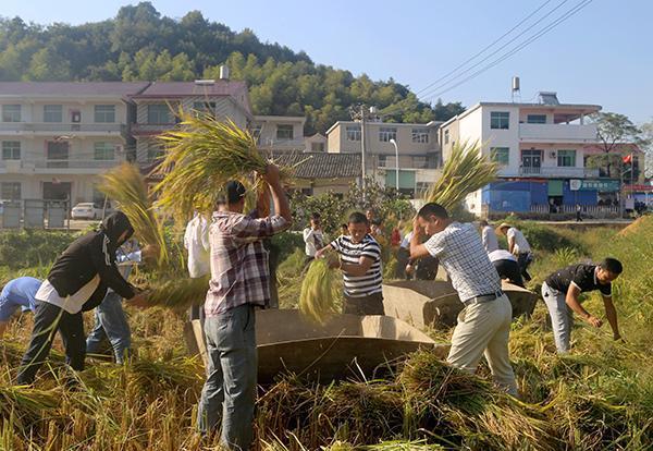 丰收收割节,村民们自然少不了割禾,打禾,看看村民割的多开心,打谷多带劲