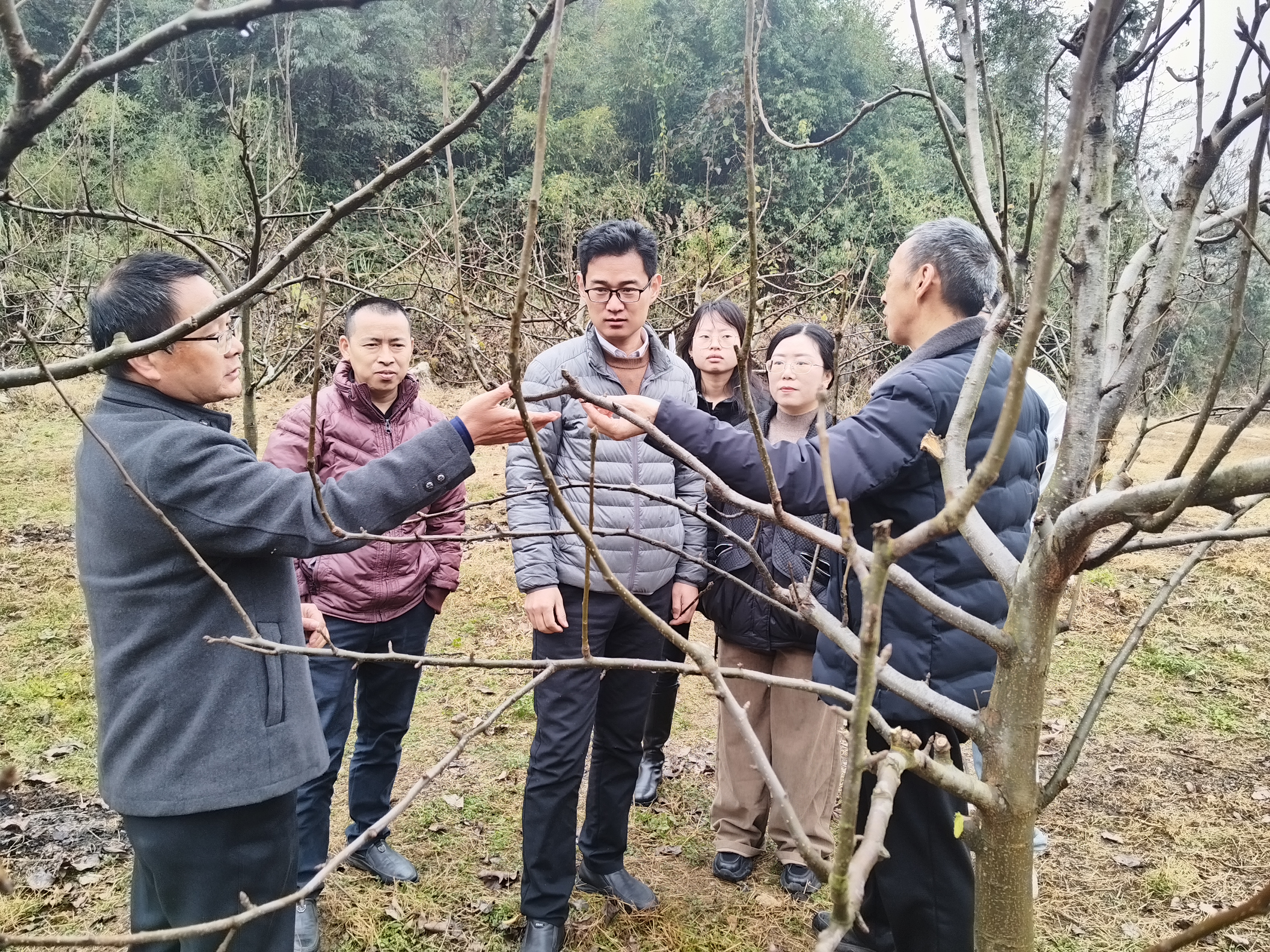 2025年12月11日,湖北省恩施州农业科技服务队宣恩团队在宣恩县椒园镇黄坪村黄金梨专业合作社开展下沉服务活动,通过引种中梨4号等品种、开展提高花芽率试验,按照果树栽培管理技术规范,指导果农做好修剪、施肥、除草、病虫害防治、花果管理等工作。