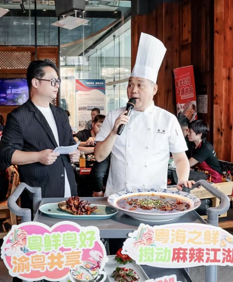 “重庆火锅,以其‘麻辣鲜香’闻名于世,广东海鲜,则以‘鲜活生猛’享誉全国。金鲳鱼、海鲈鱼等广东现代化海洋牧场臻品走进山城重庆,就是希望让‘最鲜的海味’遇上‘最辣的热情’,在一口火锅里碰撞出新的火花,为两地消费者带来不一样的味蕾体验。”广东省农业农村厅党组书记、厅长刘棕会表示,“希望渝粤两地共同努力,让更多广东鲜品走进重庆的千家万户,携手重庆火锅的美味走向更广阔的市场”。