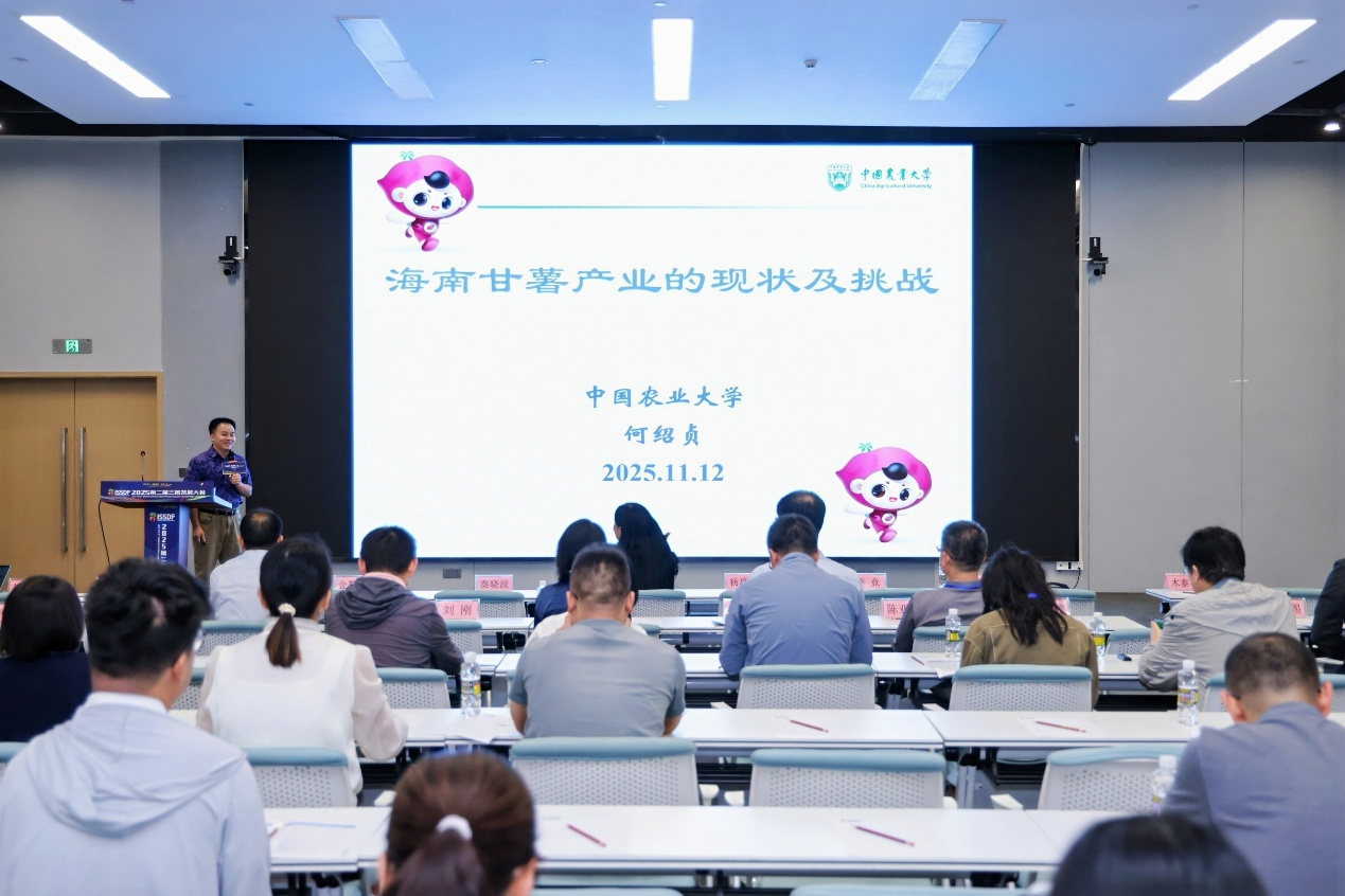 农业农村部甘薯生物学与生物技术重点实验室副主任、北京市粮食作物创新团队岗位专家、海南地瓜资源综合利用岗位专家、中国农业大学何绍贞教授应邀做题为“海南甘薯产业的现状与挑战”的主旨报告,分享了海南甘薯产业发展的现状、面临的挑战和应对的策略,通过政产学研用深度融合,提升海南甘薯产业的核心竞争力与市场影响力,助力构建海南自贸港甘薯产业的可持续发展体系。