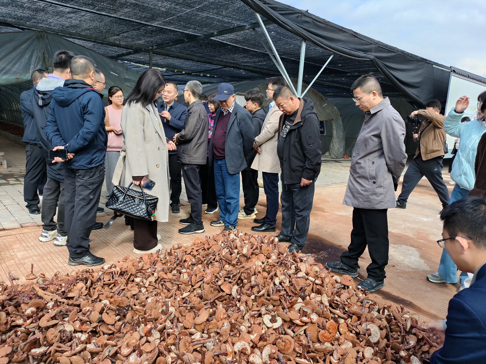 位于大别山腹地的金寨县,有各种中药材1363种,素有“西山药库”之称。期间,与会人员前往该县吴家店镇参观考察了产地加工基地、野菊花资源圃和吴家店西庄灵芝基地,通过直观感受加深对产业实际运营的了解,对金寨全产业链发展中药材先进做法给予充分肯定。