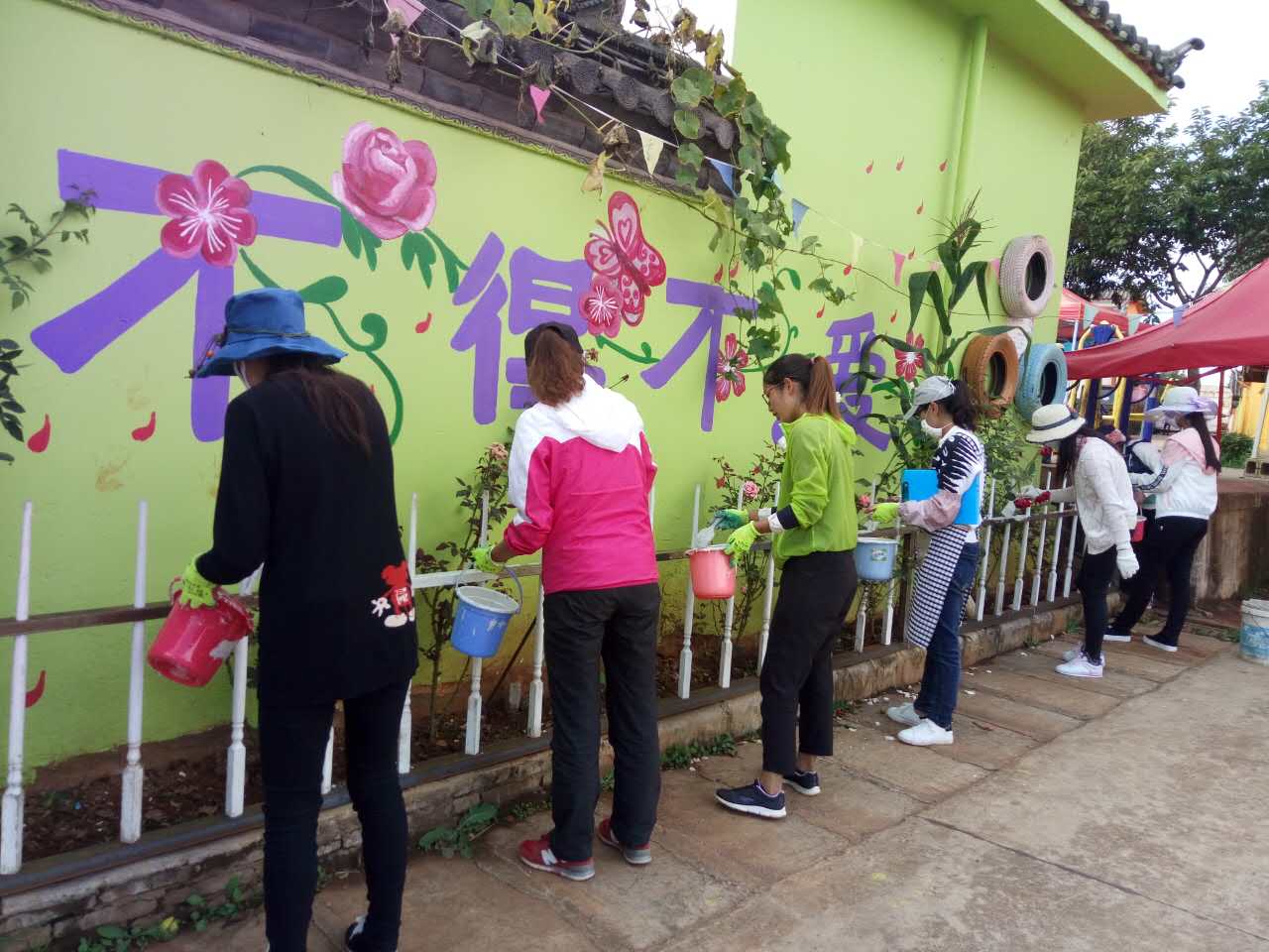 公司一方全权负责制定完成了“九色玫瑰小镇”项目的总体规划,并且付诸实施:在442个庭院的房前屋后、街巷道路两旁种植10万株,几十个品种的观赏玫瑰,致力于今后把移民村打造成:集八个少数民族文化融合、乡村旅游、彩色创意与鲜花观赏为一体的精品村。