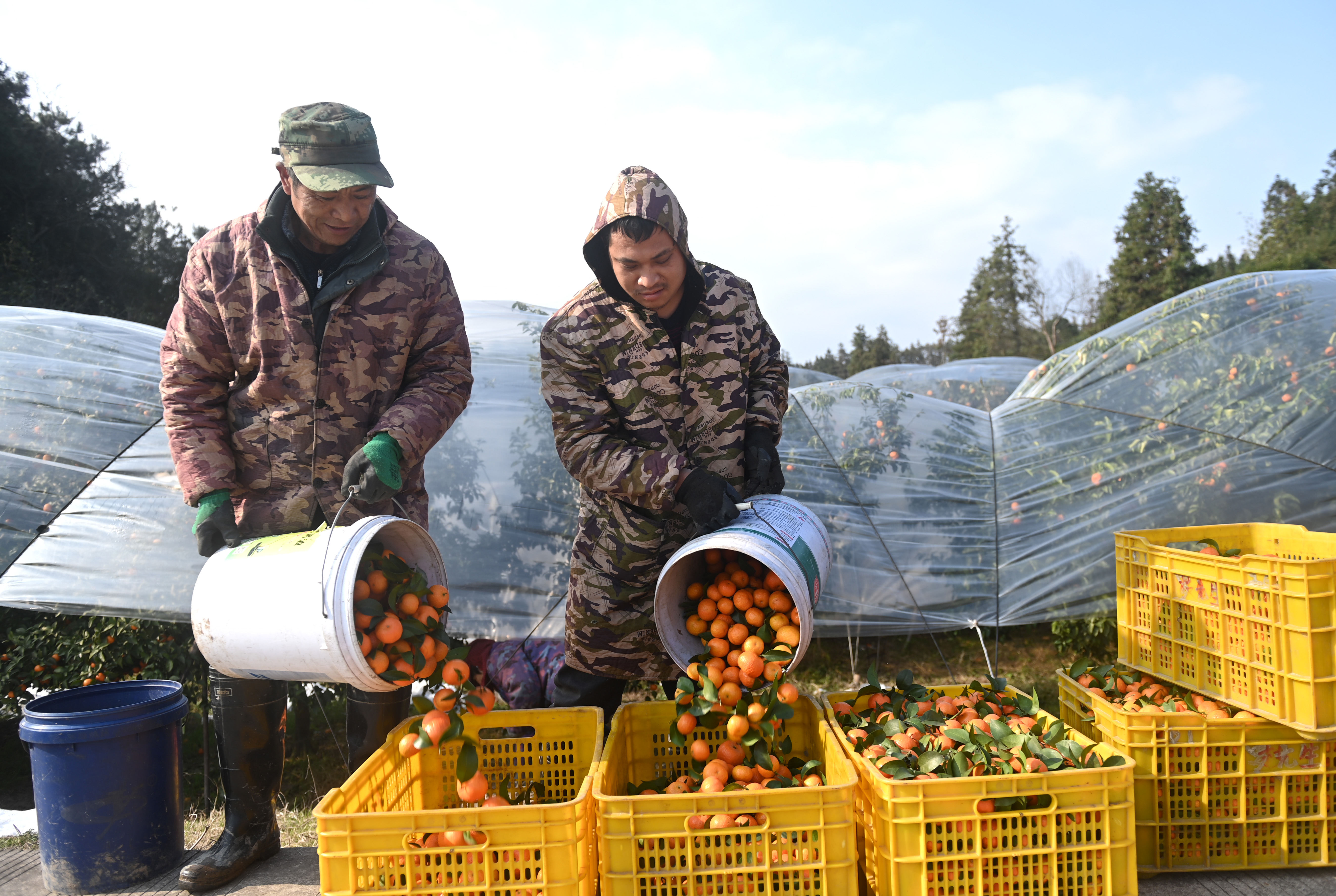 眼下,位于桂北的广西全州县正遭遇寒潮天气,当地大面积砂糖橘通过覆盖保护膜等方式保温防冻。
