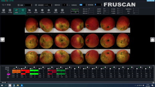 洗净一身尘土的苹果由风机吹干水分后排列进入外观视觉与内部品质信息的检测环节,进行分选分级。