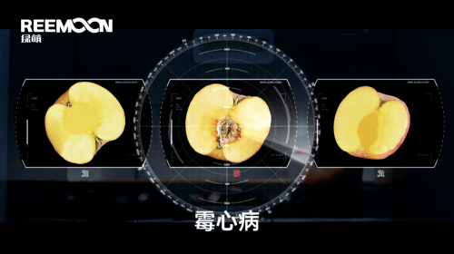 绿萌自主研发的内部品质无损检测系统采用目前主流的人工智能(AI)系统+在线式近红外无损检测原理,赋予了设备自主学习的能力。在检测过程中能通过大数据进行持续学习,智能分析出每颗苹果的糖度与霉心、褐变等内部信息。