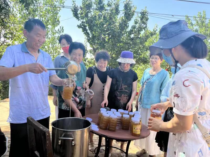 围绕“甜蜜事业”,区发改委驻红桥村帮扶工作队队员卢一凡帮助脱贫户李茂直播代货,销售蜂蜜500余斤;王丹凤累计为西小凡村脱贫户王世录销售蜂蜜300余斤;神华国华孟津电厂组织职工在西沟村集体采购蜂蜜2000余斤,消费帮扶价值4万余元。