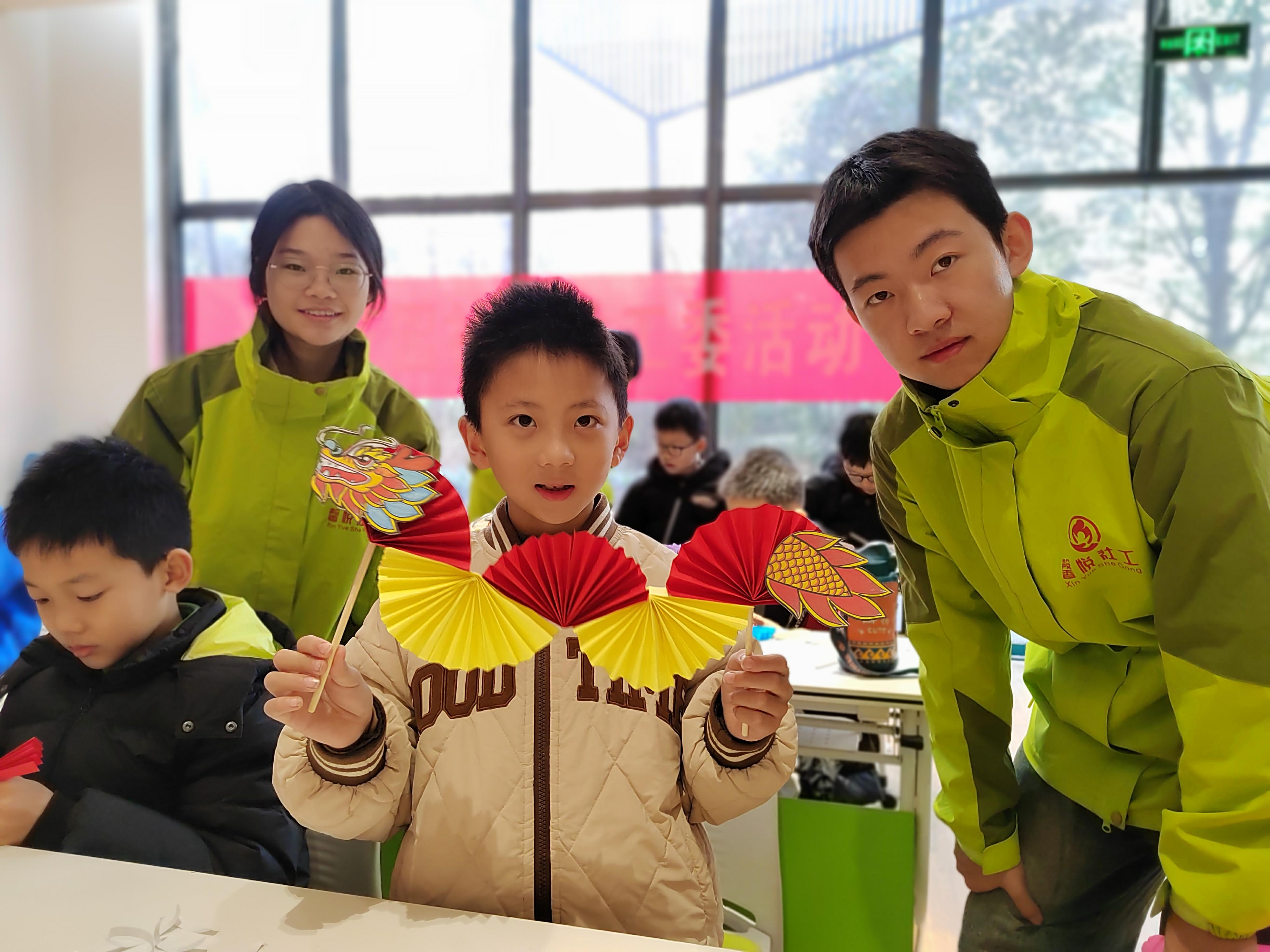 随后,破冰游戏“击鼓传花”开始,“花”落谁家,孩子们起身介绍自己。团辅小游戏结束后,大学生志愿者组织孩子进行兴趣手工制作龙,因为今年是蛇年又称是小龙年,龙,在中国文化中象征着力量,智慧和好运,是吉祥的象征,龙年自然被赋予了特别的意义和期待,它代表着新的开始,新的起点。