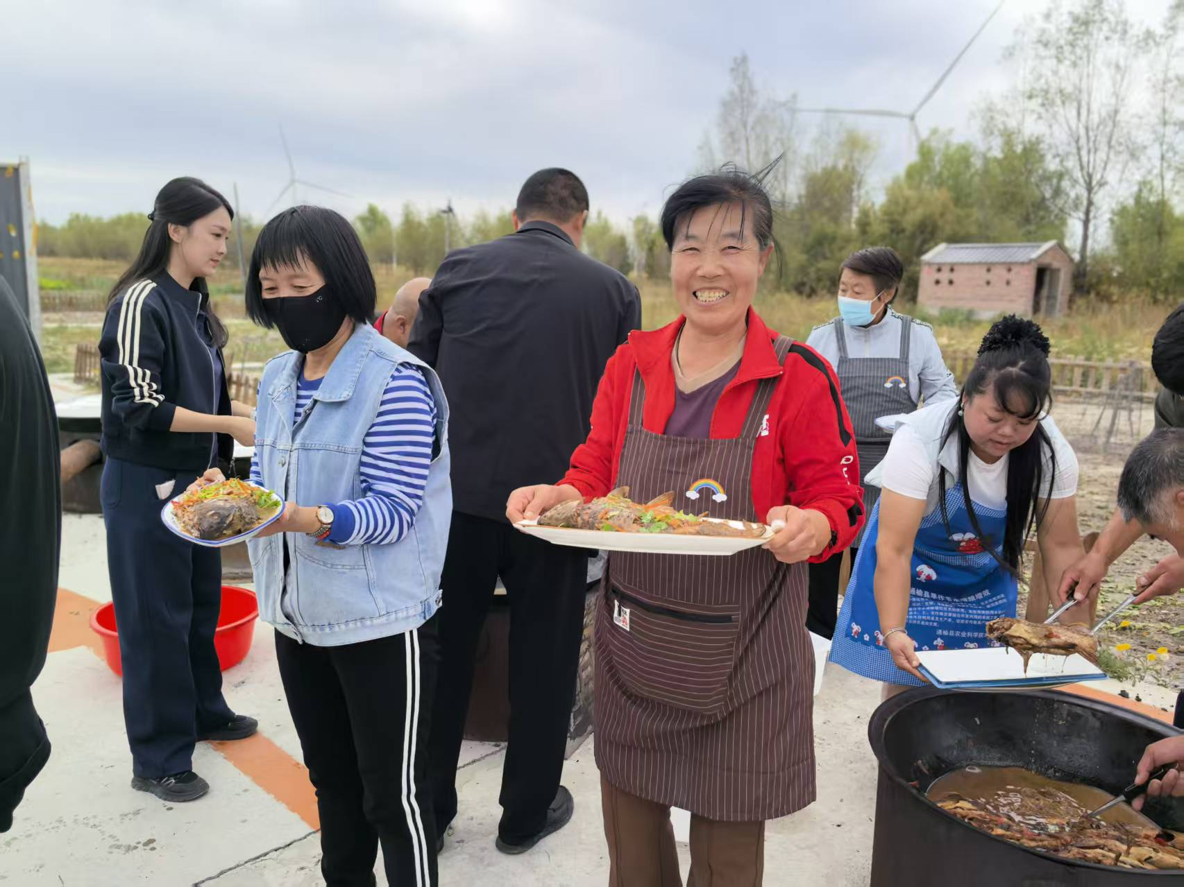 乡大集广场上,四十余张桌子整齐排开,棚上挂着红灯笼,桌面摆着刚从地里收的红辣椒、黄玉米、土豆等,满是双节与丰收的味儿。村民们早早支起大铁锅,炖排骨咕嘟冒泡、凉拌野菜清爽解腻,更有丰收特色菜——猪肉血肠、炖小鸡,刚从果园摘下的鸡心果和葡萄摆上桌,满是城市难寻的“乡村团圆味”。县城来的群众也不闲着:有人帮着择菜洗碗,有人分享自带的月饼,从事电商的年轻人拿起手机,对着桌上的丰收菜拍图写文案,“咱乡的丰收食材,中秋国庆线上肯定受欢迎!”席间,村民李大叔给城里孩子夹块排骨,“自家养的猪,香!中秋国庆就得吃点好的!”县里来串亲戚的小伙教大家用社交平台分享美食,还不忘配上“中秋全村宴”的话题,“让城里亲戚也看看咱乡村的丰收团圆饭”。这桌热乎的“村宴”,不仅吃出“一家人”的温馨,更让原生态食材、丰收成果被看见,为乡村特色种养、农产品加工产业的未来打开了发展新窗口。