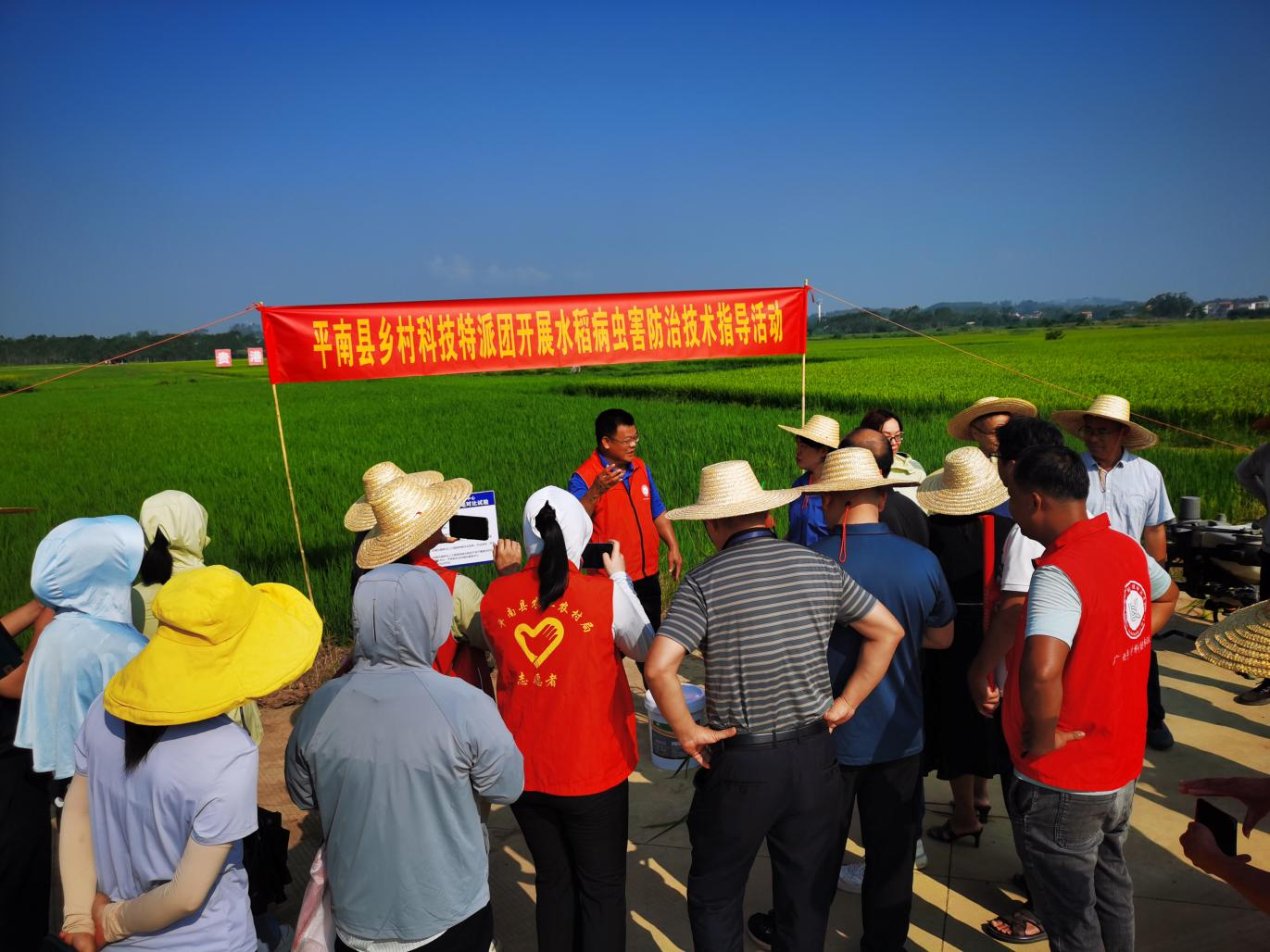 (贵港市平南县乡村科技特派团开展水稻病虫害防治技术指导活动现场 通讯员林益群供图)