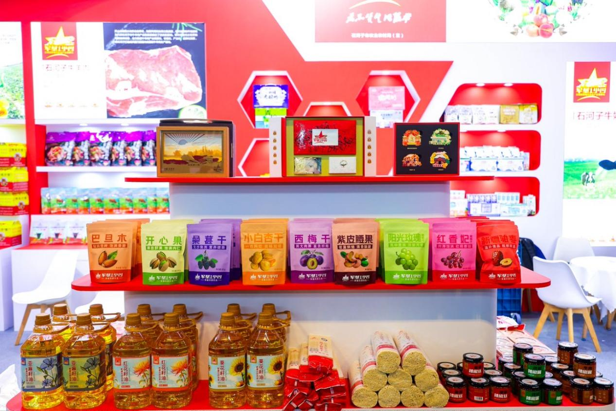 本届农交会上,“军垦1949”展位集中展示了该品牌授权的数百款优质产品,包括天山云牧的有机A2蛋白牛奶、石河子花园乳业的酸奶、张裕巴保男爵酒庄的干红葡萄酒、沙地酒庄的白兰地葡萄酒、西域明珠的窖藏级干红葡萄酒、小白杨酒业的水晶白杨白酒、众拉食品的风干拉条子、润康缘食品的手撕椒麻鸡、洁曼卫材的棉柔巾、121团双丰益合作社的哈密瓜等,还有辣皮子馕、手撕风干牛肉、大片厚切风干牛肉、神内胡萝卜汁饮料等多款新疆特色优质产品,涵盖了奶制品、牛羊肉、葡萄酒、棉制品、特色果蔬五大农业产业集群。新疆军垦一九四九农文旅产业发展有限公司也推出了多款代表新疆品质的特色产品,例如优选高筋小麦粉、红花籽油、雪莲辣椒丝、阳光玫瑰葡萄干、小白杏干及军垦1949定制新疆棉毛巾等等。