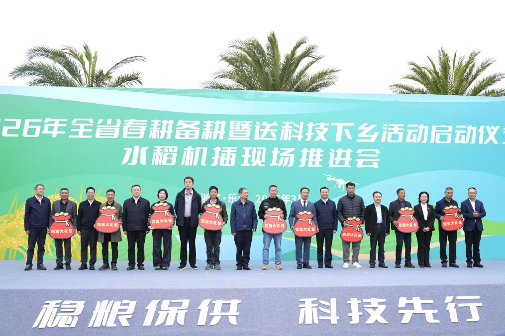 3月28日,2026年全省春耕备耕暨送科技下乡活动——水稻机插现场推进会在温州乐清市清江镇北塘现代农业观光园举行。