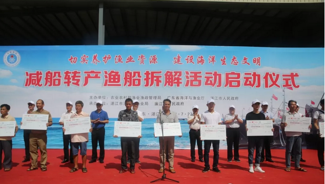海洋捕捞渔船船数和功率数“双控”制度深入推进,减船转产工作顺利实施。全国首次渔船集中拆解活动在广东举行,转产渔民现场喜领减船补助资金。截止2018年底,中央财政已安排专项资金25亿元,全国共完成海洋捕捞机动渔船拆解17000余艘、压减功率100多万千瓦,分别完成“十三五”压减目标的86%和69%,超额完成年度任务,海洋捕捞渔船快速增长的态势得到初步遏制。
