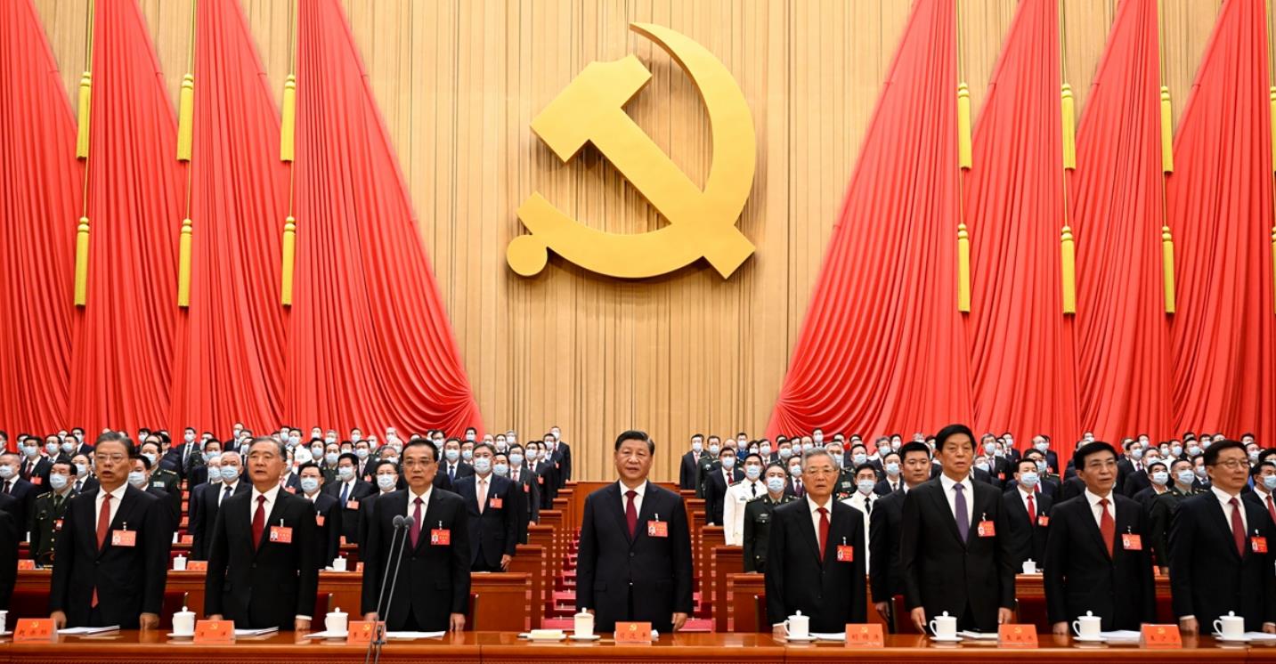 10月16日,中国共产党第二十次全国代表大会在北京人民大会堂开幕。这是习近平、李克强、栗战书、汪洋、王沪宁、赵乐际、韩正、胡锦涛在主席台上。新华社记者 李学仁 摄