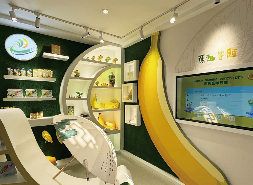 香蕉博物馆内的香蕉趣味答题区及丰富的香蕉文创产品、香蕉制品。黄天航 摄
