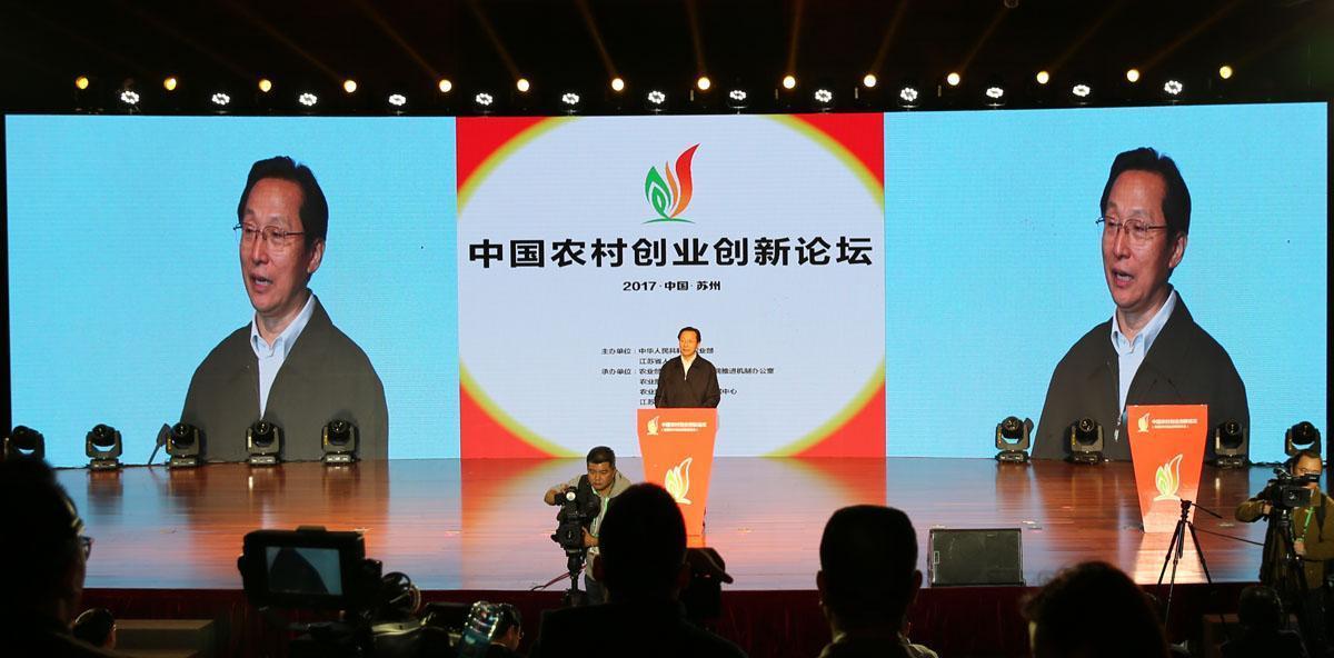 11月11日,中国农村创业创新论坛在苏州国际博览中心举行,农业部部长韩长赋作主旨演讲。