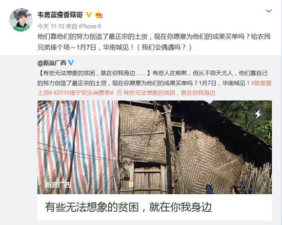 同时,本地众多大咖也纷纷发微博助力本届年货节暨精准扶贫百企联盟年货展,希望通过他们的影响力,让更多的人了解、关注扶贫工作,选购扶贫产品。